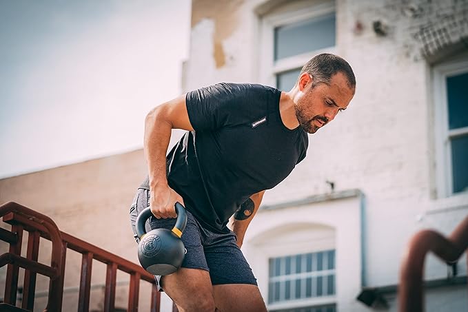 - Ergonomic Shape with Recessed Logo: With its logo carved inside the bell, this strength training kettlebell protects your wrists and forearms during presses, cleans, and overhead movements