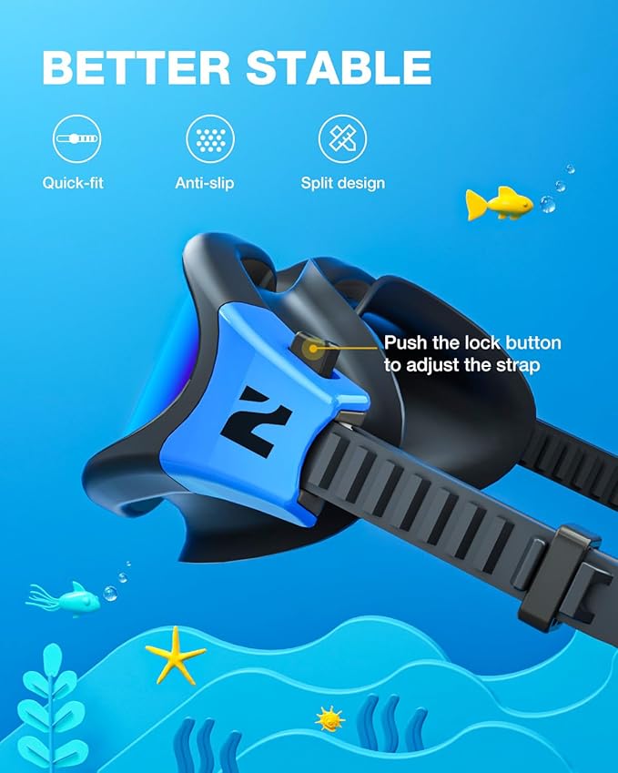 - [Comfortable Wearing] - This kids swimming goggles come with soft and flexible silicone gasket, adjustable split head strap, TPR ergonomic nose bridge, provides excellent suction and ensure non-slip coverage, that is designed to fit a wider range of face shapes for both boys and girls