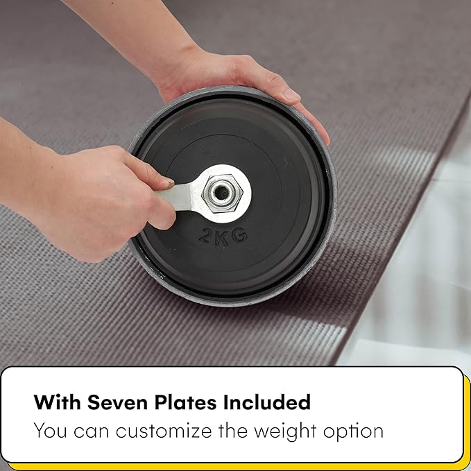 - TAILORED ADJUSTABILITY: This kettlebell set includes 7 plates for easy weight changes, securely locked with a center screw and allen wrench. All tools for quick adjustments are included.
