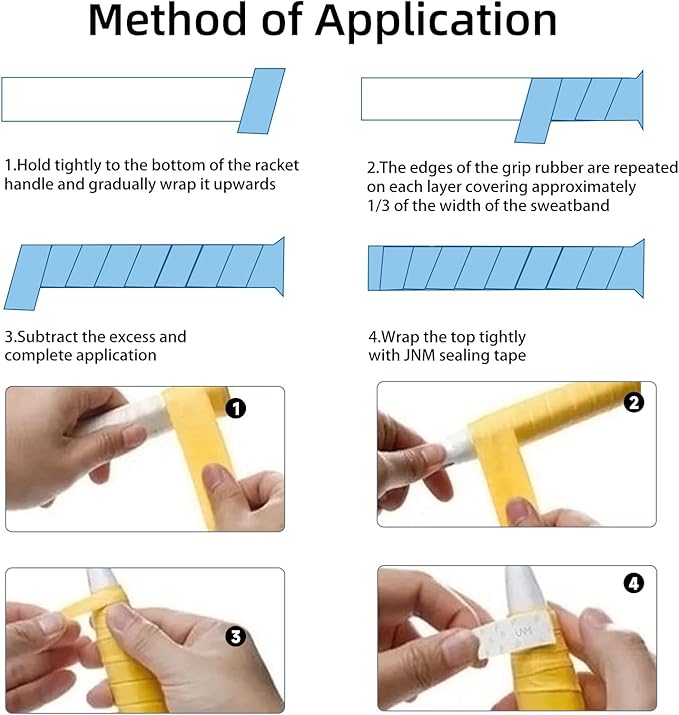 - Easy Installation: Follow the steps shown in the diagram to wind the tennis grip strap in an orderly manner and fix it with the top treatment provided. It's simple and easy to handle. Tennis racket grips can protect your racket well and extend its service life.